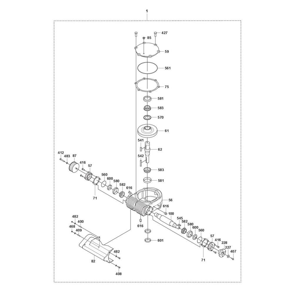 The Gearbox (Right) Assembly for the Husqvarna CRT 48 PS Petrol Trowel is essential for maintaining optimal performance. This genuine Husqvarna part ensures smooth operation and durability. The assembly includes key components such as gears, shafts, and bearings, designed to withstand the demands of heavy-duty use. Ideal for routine maintenance and repair, it helps extend the service life of your trowel.