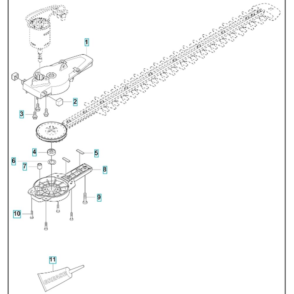 The Gears Assembly for the Husqvarna 215iHD55 Hedgetrimmer includes essential components to ensure smooth operation and longevity. This assembly plays a crucial role in transferring power efficiently within the hedgetrimmer, reducing wear and tear. Genuine spare parts are available to maintain optimal performance, including gears, shafts, and bearings.