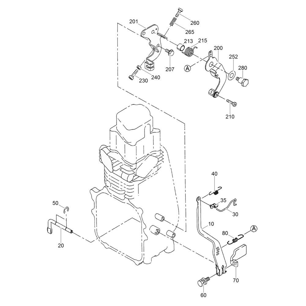 The Governor Assembly for the Wacker WM 100 Engine is designed to regulate engine speed and ensure optimal performance. It includes components such as springs, levers, and linkages, which work together to maintain consistent engine operation. Essential for routine maintenance, this assembly helps in reducing wear and prolonging engine life.