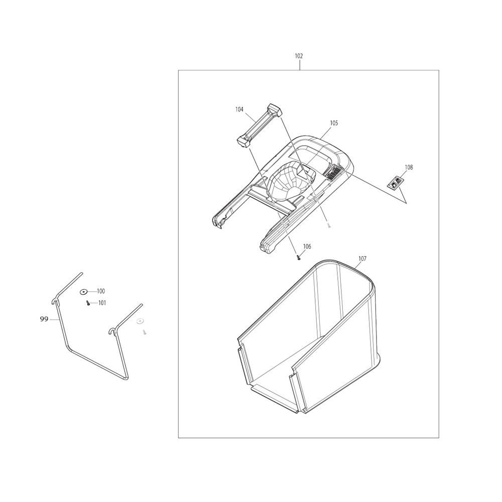 The Grass Catcher Assembly for the Makita DLM382 Mower is designed to efficiently collect grass clippings, ensuring a tidy lawn. This assembly is essential for maintaining the mower's performance and includes components like the catcher bag and frame. Genuine Makita parts ensure compatibility and durability, making it ideal for routine lawn maintenance.