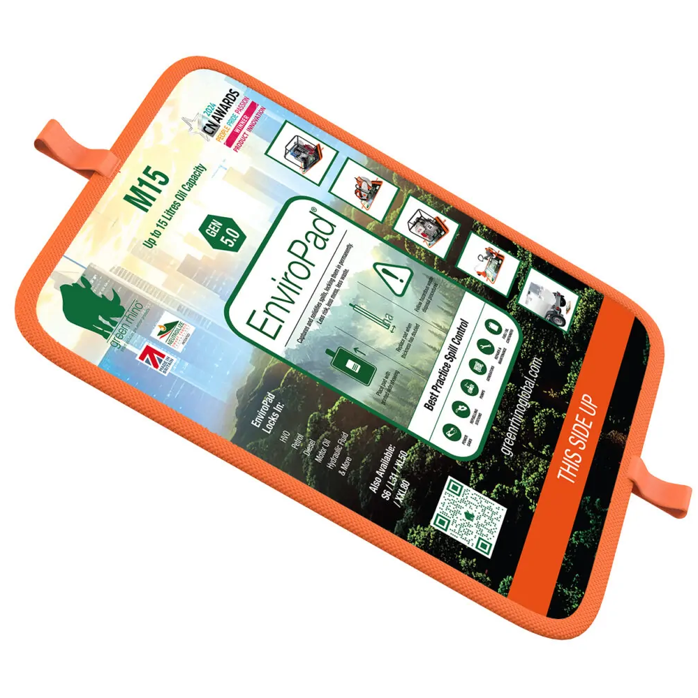 The Green Rhino EnviroPad 5.0 is a spill mat designed to permanently lock in oil and fuel spills using smart polymer technology. It transforms oils, fuels, and hydraulic fluids into a non-leaching solid, ensuring environmental safety. The pad supports bio alternatives like HVO and can be used outdoors in all weather conditions. Available in sizes from Small to XX-Large.