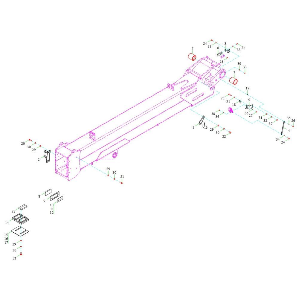 The Guide Arm Assembly for the Wacker TH522 Telehandler is essential for maintaining optimal machine performance. This assembly includes components such as brackets, pins, and bushings, which ensure smooth operation and precise handling. Designed for durability, it supports the telehandler's lifting and manoeuvring capabilities, enhancing efficiency on site.