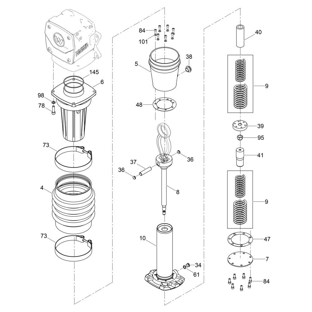 The Guide Cylinder Assembly for the Wacker DS70 Trench Rammer is crucial for maintaining the machine's operational efficiency. This assembly ensures precise movement and stability during compaction tasks. It includes components such as seals, springs, and guides, designed to withstand the rigours of heavy-duty use. Genuine Wacker Neuson parts guarantee compatibility and durability.
