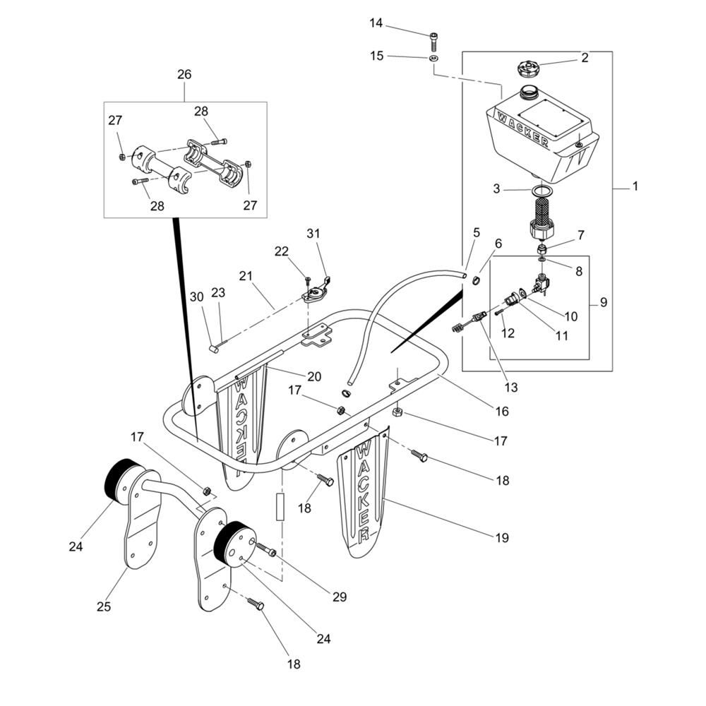 The Guide Handle Assembly for the Wacker BS65Y Trench Rammer is designed to provide stability and control during operation. This assembly includes components such as grips, brackets, and fasteners, ensuring a secure and comfortable handling experience. Genuine Wacker Neuson parts guarantee compatibility and durability, enhancing the performance of your trench rammer.