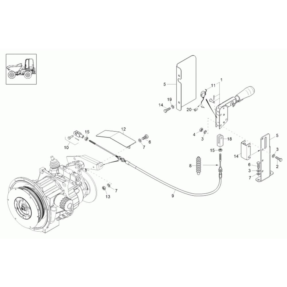 The Hand Brake Assembly for the Wacker 10001 Dumper is crucial for ensuring safe and reliable operation. This assembly includes components such as levers, cables, and springs, designed to provide effective braking performance. Regular maintenance of these parts helps maintain control and safety during use, preventing wear and tear on the dumper's braking system.