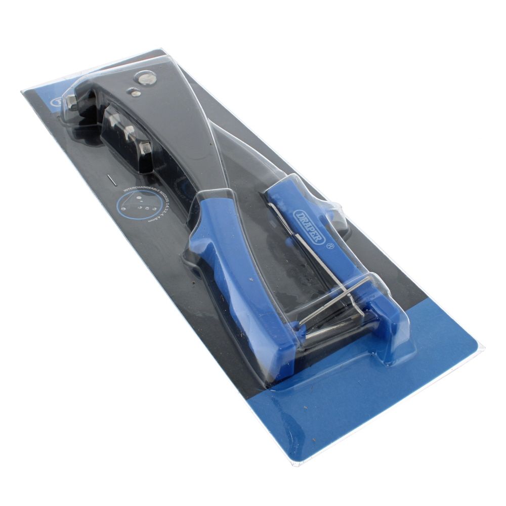 Supplied with nozzle wrench for use with the four interchangeable nozzles, which accept 2.4, 3.2, 4.0 and 4.8mm alloy and blind rivets.