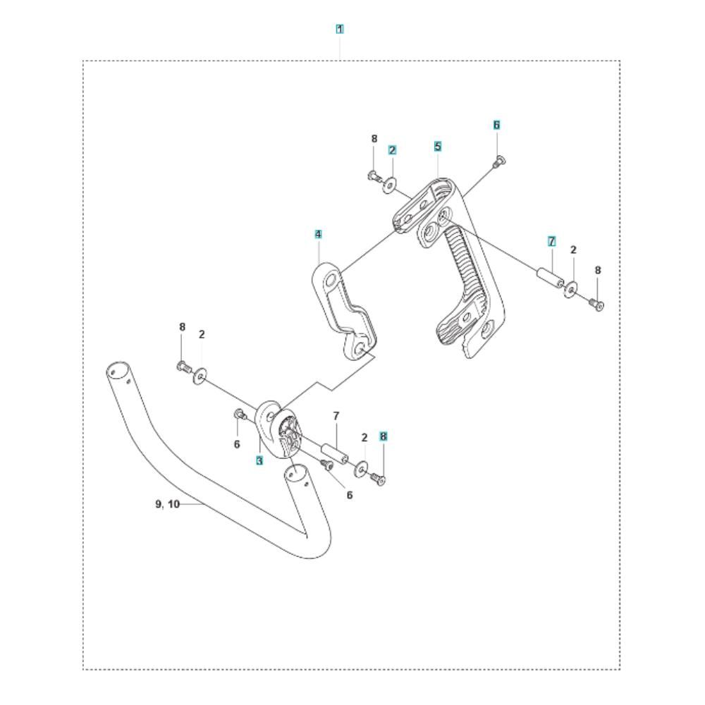 The Handle Assembly for the Husqvarna LF 50 L Compactor is designed to ensure optimal control and comfort during operation. This assembly includes components such as grips, levers, and mounting brackets, which are essential for maintaining the machine's performance. Suitable for routine maintenance and replacements, it helps in reducing operator fatigue and enhancing manoeuvrability.