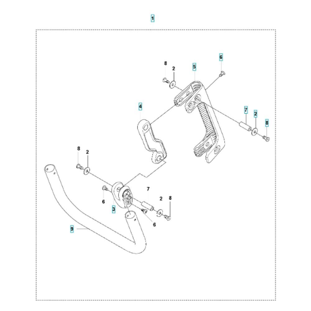 The Handle Assembly for the Husqvarna LF 80 L Compactor is designed to provide optimal control and comfort during operation. This genuine Husqvarna component ensures reliable performance and durability. The assembly includes key parts such as grips, brackets, and fasteners, essential for maintaining the compactor's efficiency and ease of use.