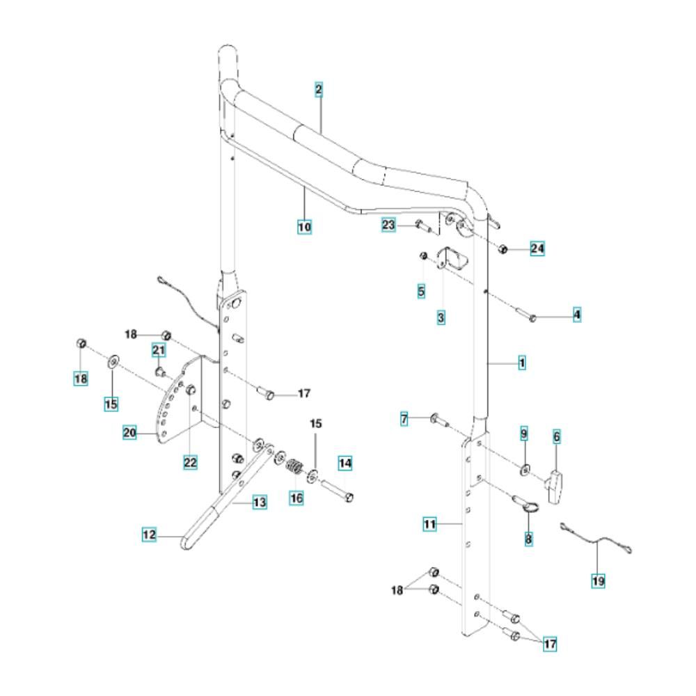 The Handle Assembly for the Husqvarna DTF22 Dethatcher is designed to ensure optimal control and comfort during operation. This assembly includes components such as grips, brackets, and fasteners, all crafted to fit seamlessly with the DTF22 model. Essential for maintaining the efficiency and ease of use of your dethatcher, these genuine Husqvarna parts provide durability and reliability.