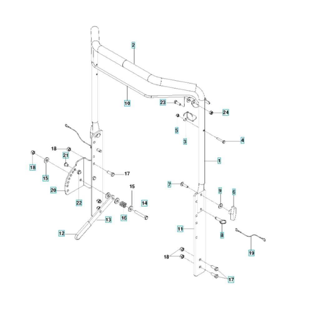The Handle Assembly for the Husqvarna DTF226 Dethatcher is designed to provide optimal control and comfort during operation. This assembly includes components such as grips, brackets, and fasteners, ensuring a secure and ergonomic handle setup. Genuine Husqvarna parts ensure compatibility and durability, enhancing the performance of your dethatcher.