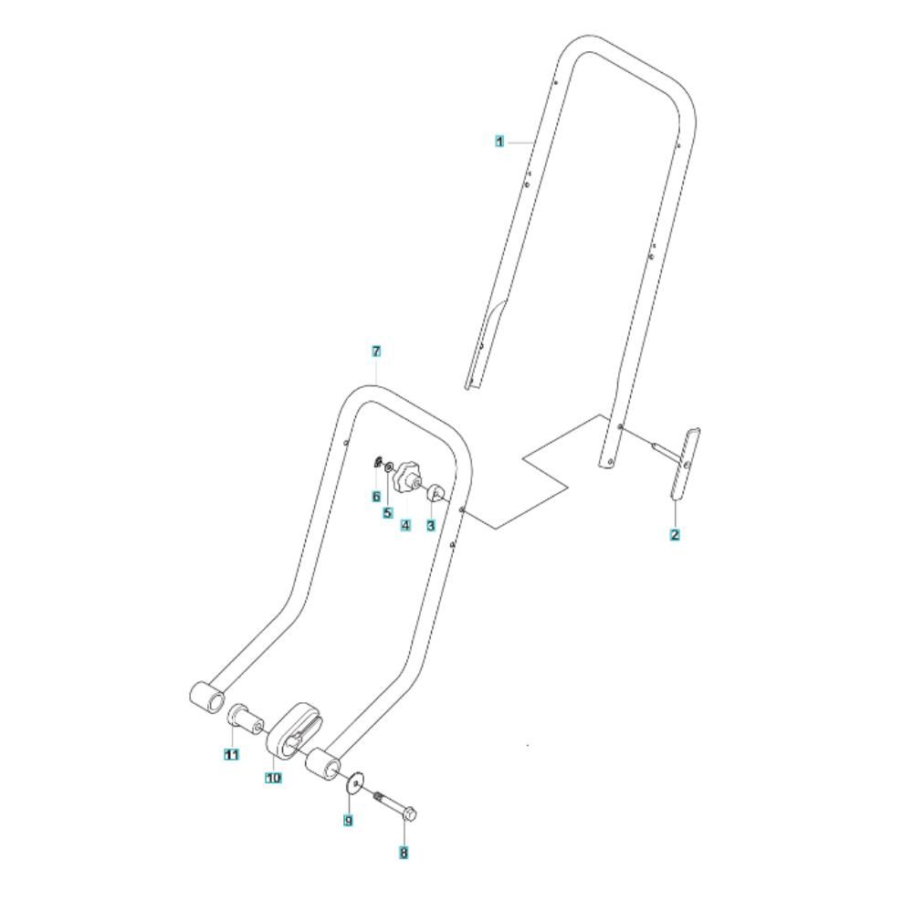 The Handle Assembly for the Husqvarna LF 50 L Compactor is designed to ensure optimal control and comfort during operation. This assembly includes key components such as grips, levers, and brackets, essential for maintaining the machine's functionality and ease of use. Genuine Husqvarna parts guarantee compatibility and durability, supporting efficient compaction tasks.