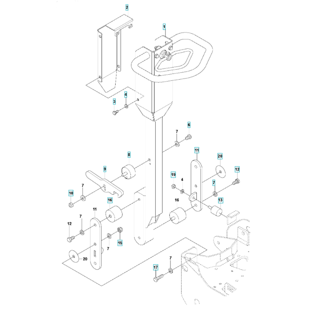 The Handle Assembly for the Husqvarna LG 164 Petrol Reversible Compactor is designed to ensure optimal control and ease of use. This assembly includes components such as grips, levers, and brackets, essential for maintaining the machine's functionality. Genuine Husqvarna parts ensure compatibility and durability, supporting efficient operation in various compacting tasks.