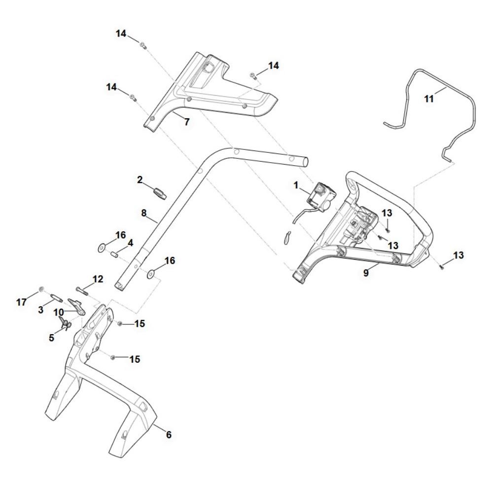 The Handle Assembly for the Stihl RMA 443.1 C Lawn Mower is a genuine Stihl part designed to ensure optimal control and comfort during mowing. This assembly includes components such as grips, levers, and brackets, providing a secure and ergonomic handle system. Suitable for maintaining the mower's performance and ease of use.