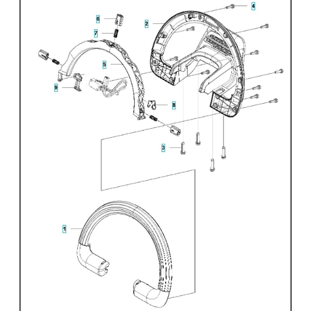 Handle equipment for the Husqvarna 520iHD60 Hedgetrimmer includes genuine spare parts designed to ensure optimal performance and comfort during use. These components are essential for maintaining control and precision while trimming hedges. Available parts may include grips, levers, and brackets, tailored to fit the Husqvarna 520iHD60 model.