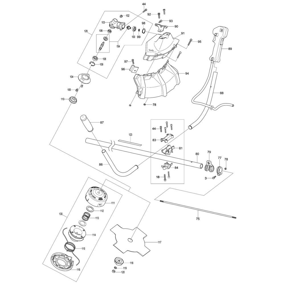 The Handle, Pipe, Shield Assembly for the Makita EM2600U Brushcutter includes essential components for optimal operation and safety. This assembly ensures proper handling and protection during use, featuring genuine Makita parts. Designed for durability and performance, it helps maintain the brushcutter's efficiency and user comfort.