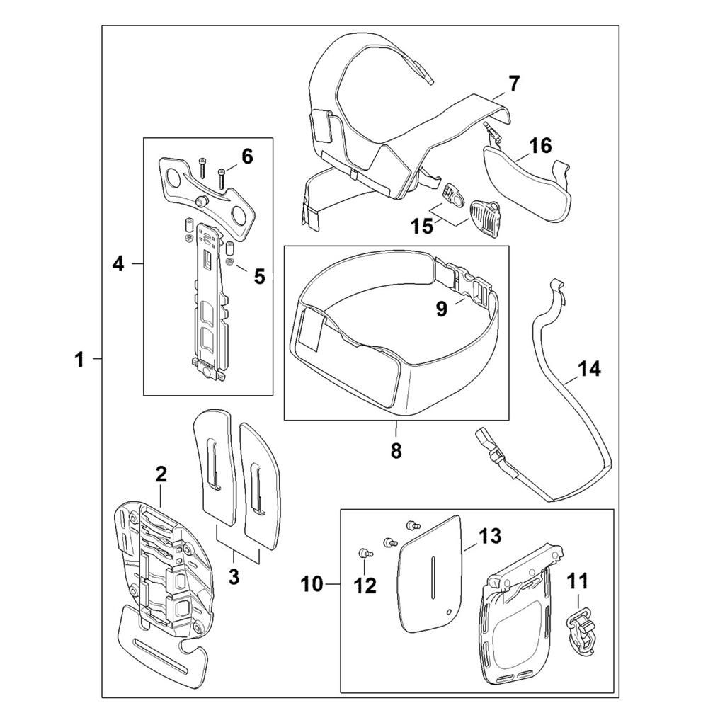 The Harness Assembly for the Stihl FS361C Clearing Saw is designed to enhance user comfort and safety during operation. This assembly includes components such as straps, buckles, and padding, ensuring a secure fit and reducing strain during prolonged use. Ideal for maintaining balance and control, it is essential for efficient clearing tasks. Available in various configurations to suit different user needs.