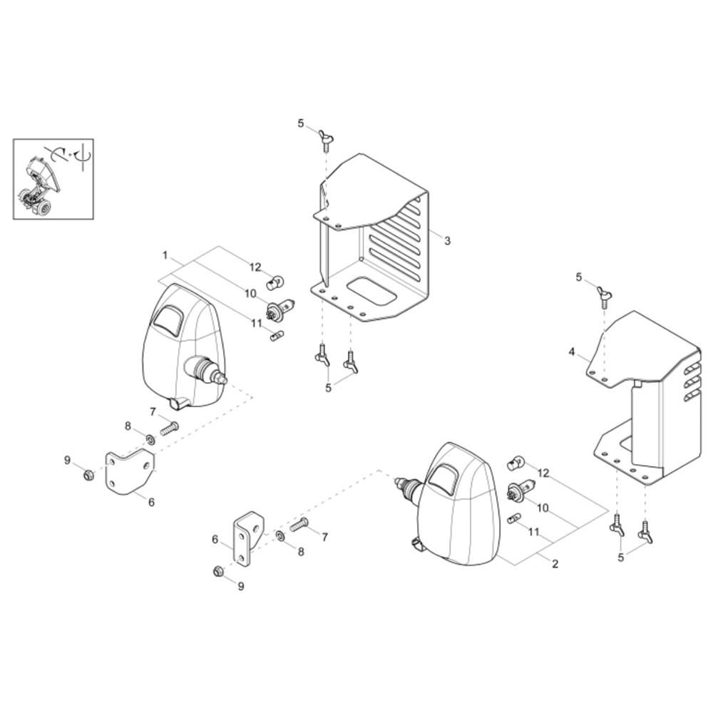 The Headlight Assembly for the Wacker DW20 Dumper is designed to ensure optimal visibility and safety during operation. This assembly includes components such as bulbs, lenses, and mounting brackets, essential for maintaining the dumper's lighting system. Genuine Wacker Neuson parts ensure compatibility and reliability, supporting efficient performance in various working conditions.
