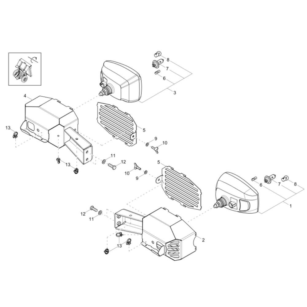 The Headlight Assembly for the Wacker DW90-2 Dumper ensures optimal visibility and safety during operation. Designed specifically for the Wacker Neuson Dumper, this assembly includes components such as bulbs, lenses, and housing, providing reliable illumination in various working conditions. Essential for maintaining the dumper's performance, it supports efficient and safe operation on construction sites.