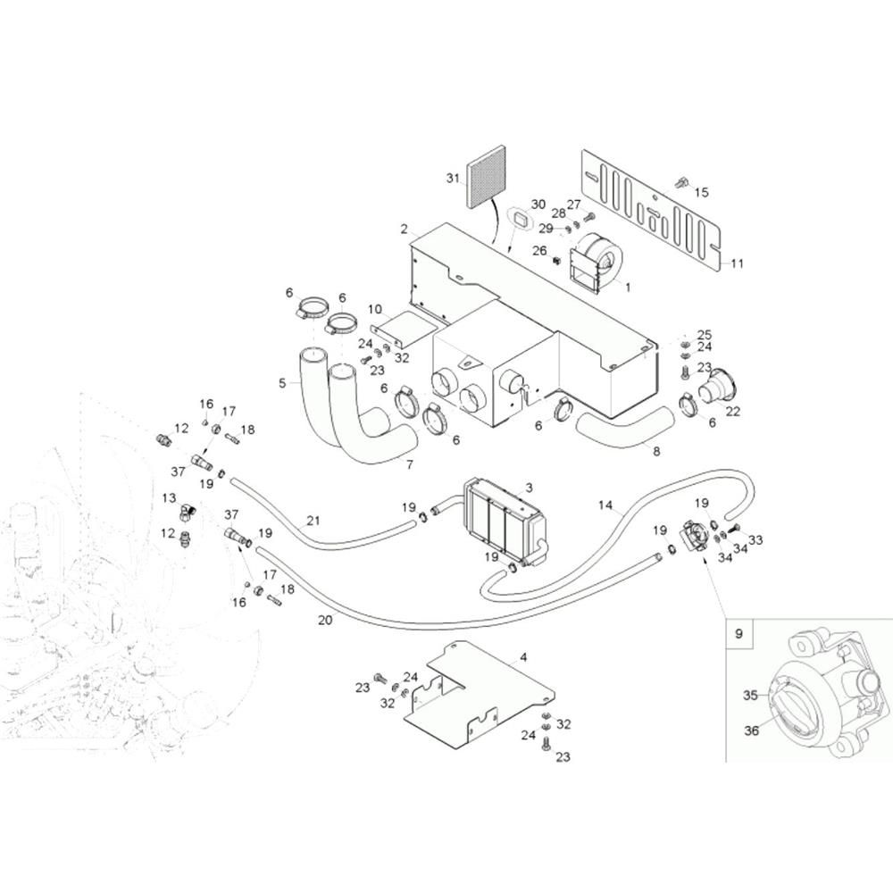 The Heating Assembly for the Wacker 50Z3 Mini Excavator is designed to ensure optimal temperature control within the cabin, enhancing operator comfort in colder conditions. This assembly includes components such as ducts, vents, and control units, all tailored to fit the Wacker Neuson model. Regular maintenance of these parts helps maintain efficiency and reliability.
