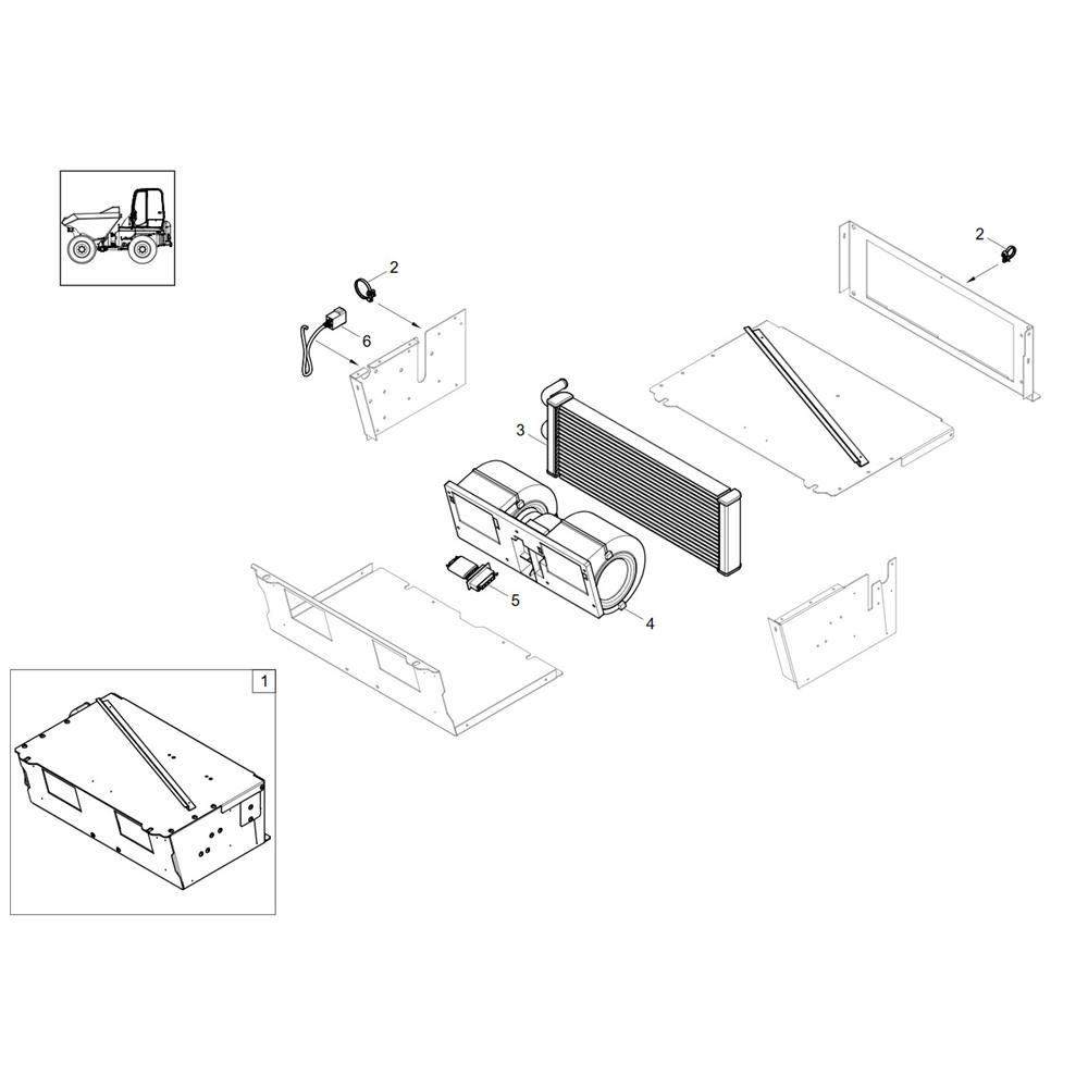 The Heating Assembly for the Wacker DW30-2 Dumper is designed to ensure optimal performance in cold conditions. This assembly includes components such as thermostats, heaters, and wiring essential for maintaining engine temperature and preventing cold start issues. Genuine Wacker Neuson parts ensure compatibility and reliability, enhancing the dumper's efficiency and longevity.