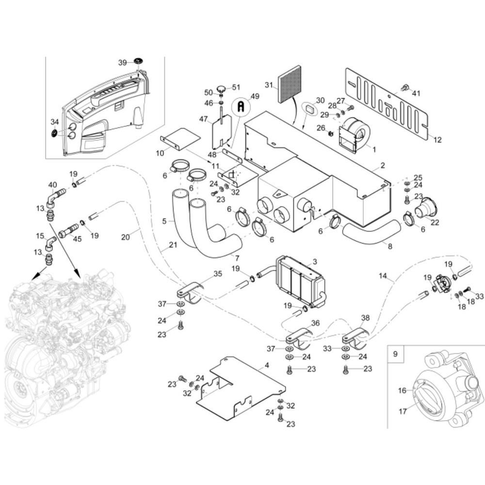 The Heating Assembly for the Wacker EW100 Excavator is designed to ensure optimal temperature control within the cabin, enhancing operator comfort and efficiency. This assembly includes components such as heaters, ducts, and controls, which are essential for maintaining a consistent climate in varying weather conditions. Genuine Wacker Neuson parts ensure compatibility and reliability.