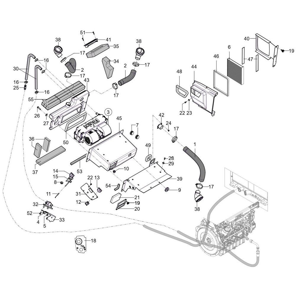 The Heating Assembly for the Wacker TH627 Telehandler is designed to ensure optimal cabin temperature control, enhancing operator comfort in various weather conditions. This assembly includes components such as heaters, ducts, and control units, all vital for maintaining a consistent and efficient heating system. Genuine Wacker Neuson parts ensure compatibility and reliability.