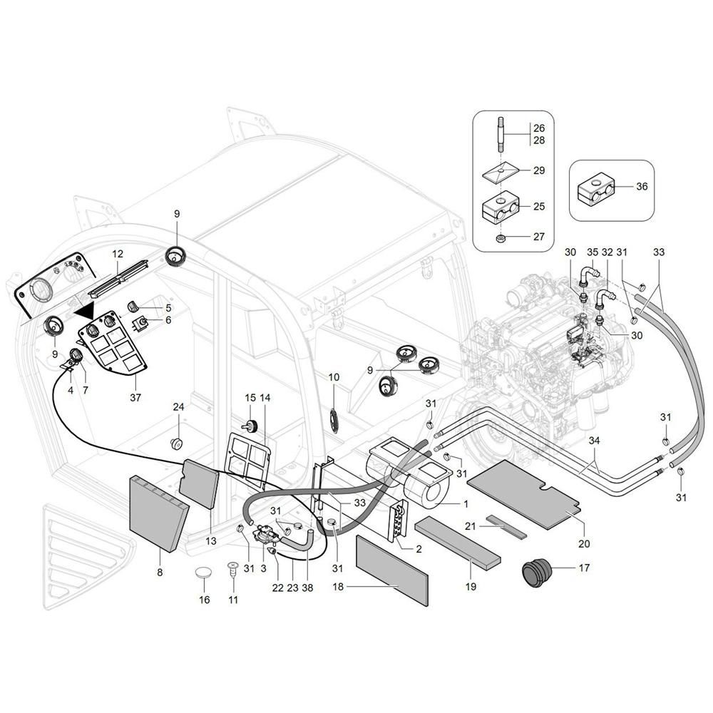 The Heating Assembly for the Wacker TH955 (416-06) Telehandler is designed to ensure optimal temperature control within the cabin, enhancing operator comfort and efficiency. This assembly includes components such as heaters, ducts, and control units, all essential for maintaining a consistent climate in various working conditions. Genuine Wacker Neuson parts ensure compatibility and reliability.