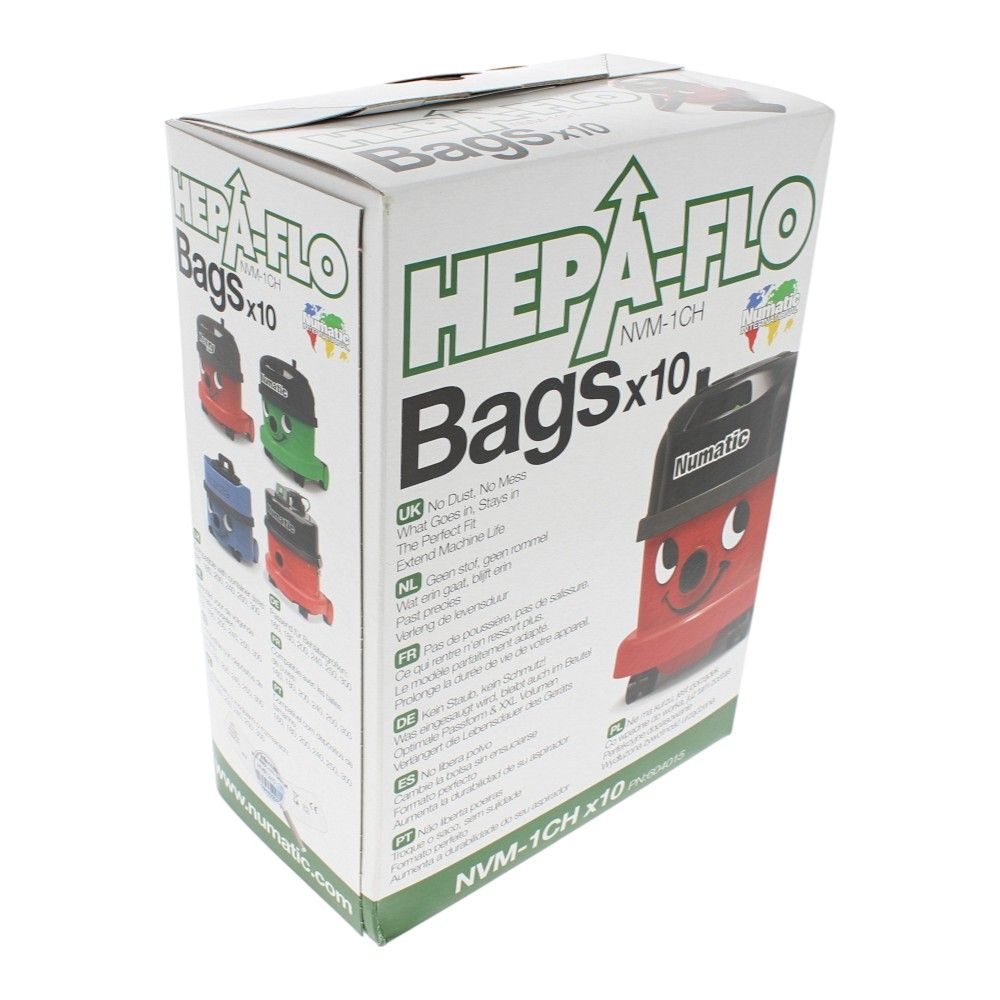 - Genuine Numatic HepaFlo bags, OEM No. 907075 (NVM‑1CH)