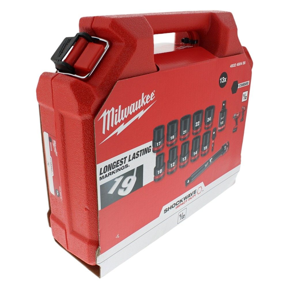 The Hex Socket Shockwave 1/2 Std Set-13pc is a Genuine Milwaukee part (OEM No. 4932480456) designed for reliable fastening and loosening of hex fasteners across construction and garden machinery. Built for heavy use, each socket is impact-rated and precision-machined to give a secure grip and reduce rounding of bolt heads. The 1/2 in drive (12.7 mm) suits common hand and power tools including ratchets, breaker bars, and impact wrenches. A robust carry case keeps the 13 pieces organised and protected for work on site or in the workshop. With a durable, corrosion-resistant finish and clear size markings, this set is a practical choice for professional trades and DIY maintenance where consistent performance and long service life matter.