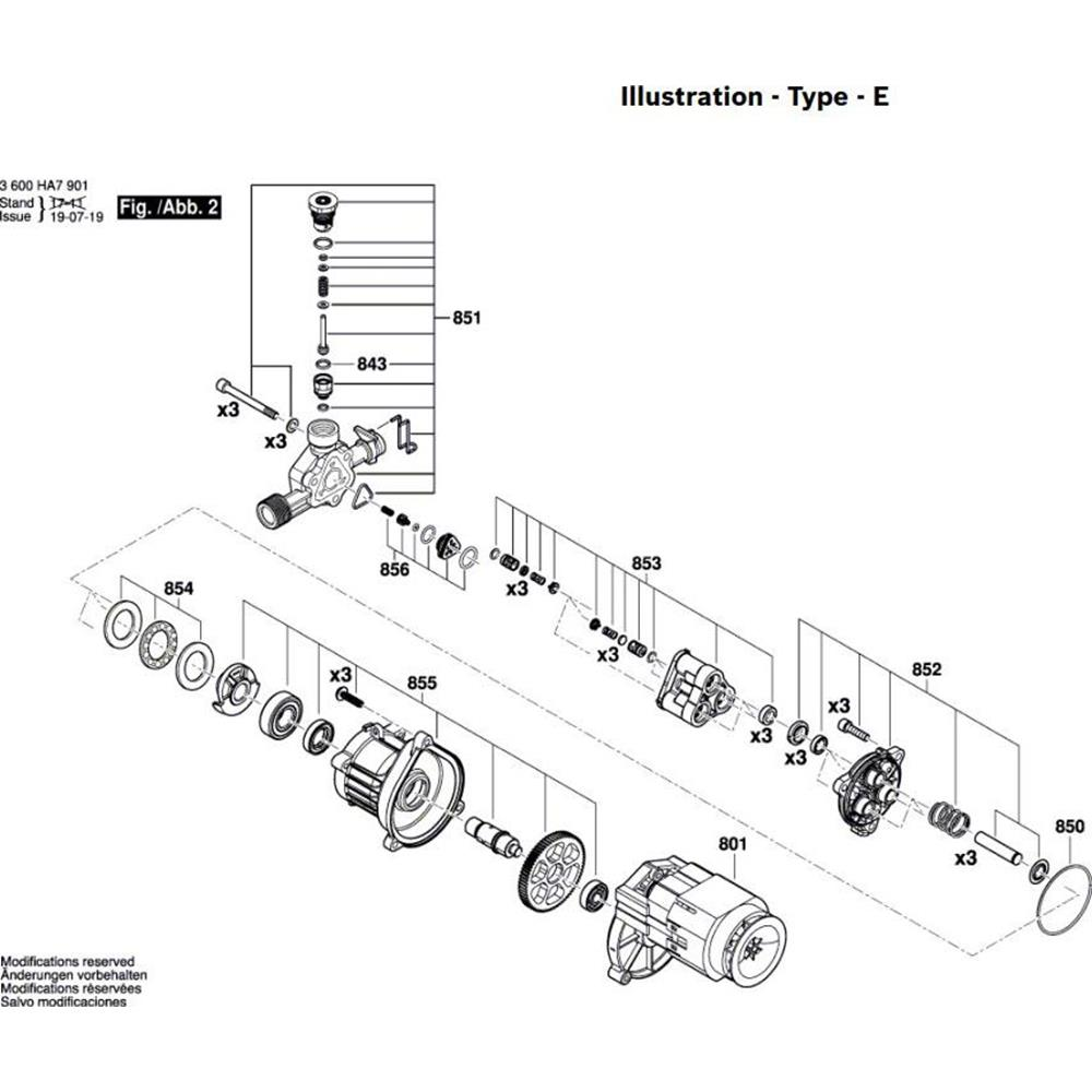 The High-Pressure Washer Assembly for the Bosch EasyAquaTak 120 includes components essential for maintaining and enhancing the washer's performance. This assembly ensures efficient cleaning by providing reliable water pressure and flow. Available parts may include hoses, nozzles, connectors, and seals, suitable for both genuine and non-genuine replacements.