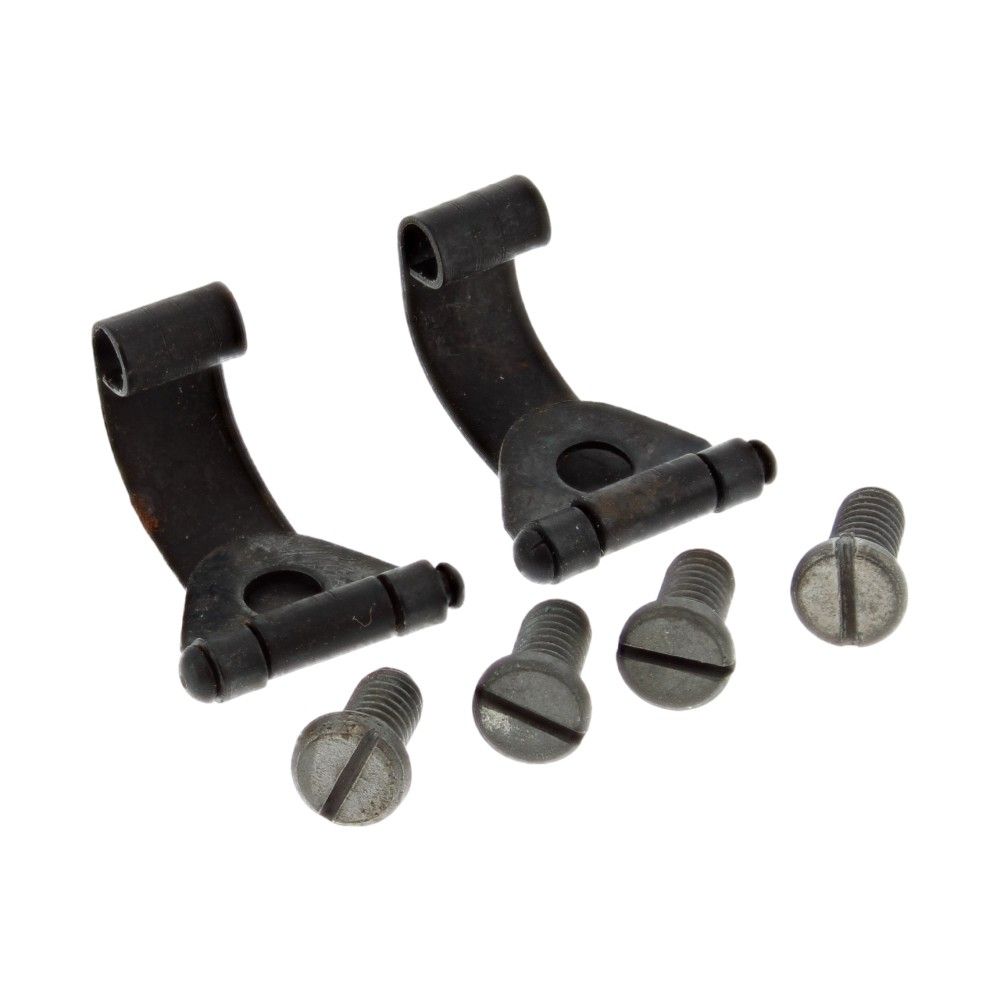 The Hinge & Clips Set for Wipac / Wico Magneto Engines - S0039 is a genuine Wipac part designed for vintage magneto engines, including Wipac, Wico, and JAP models. This set includes two hinges and clips, essential for securing the points cover on these classic engines. Made from durable metal, this set ensures a reliable fit and long-lasting performance. As an unused old stock vintage part, it may exhibit signs of age such as tarnishing or general wear, but remains fully functional and ready for use in maintaining or restoring your vintage machinery.