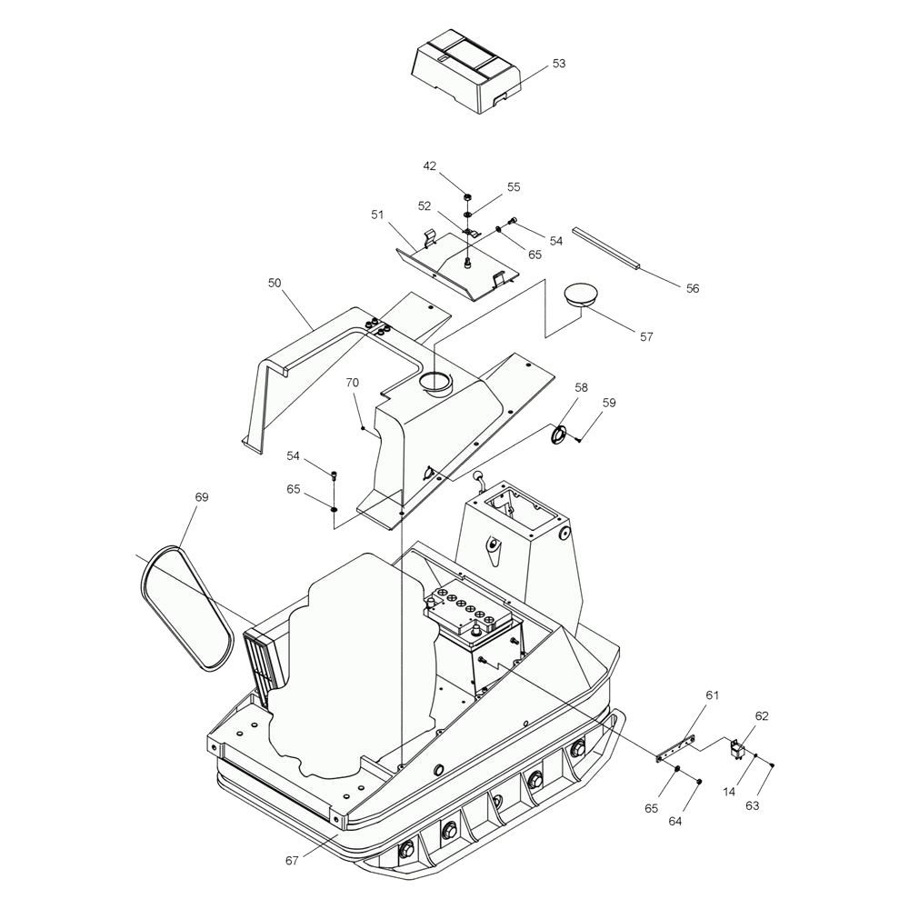 The Hood Assembly for the Wacker DPU7060 Plate Compactor is essential for protecting the engine and internal components from debris and environmental factors. This assembly ensures the longevity and efficiency of the compactor. It includes various parts such as covers, fasteners, and seals, designed to fit the Wacker Neuson Reversible Plate Compactor.