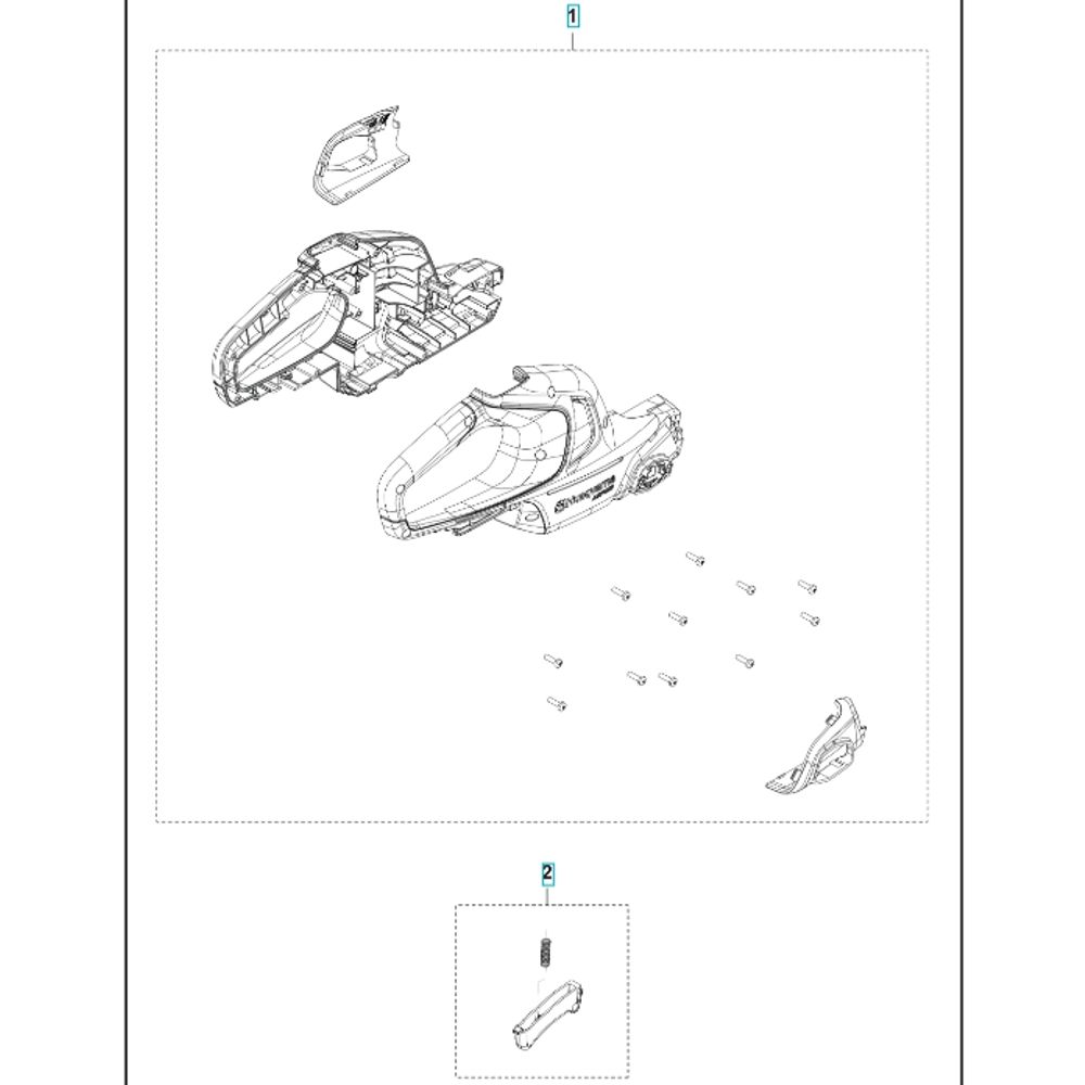The Housing Assembly for the Husqvarna Aspire H50-P4A Hedgetrimmer includes essential components to ensure optimal performance and longevity. This assembly protects internal parts from debris and damage, contributing to the efficient operation of the hedgetrimmer. Genuine spare parts are available to maintain the integrity and functionality of your Husqvarna equipment.
