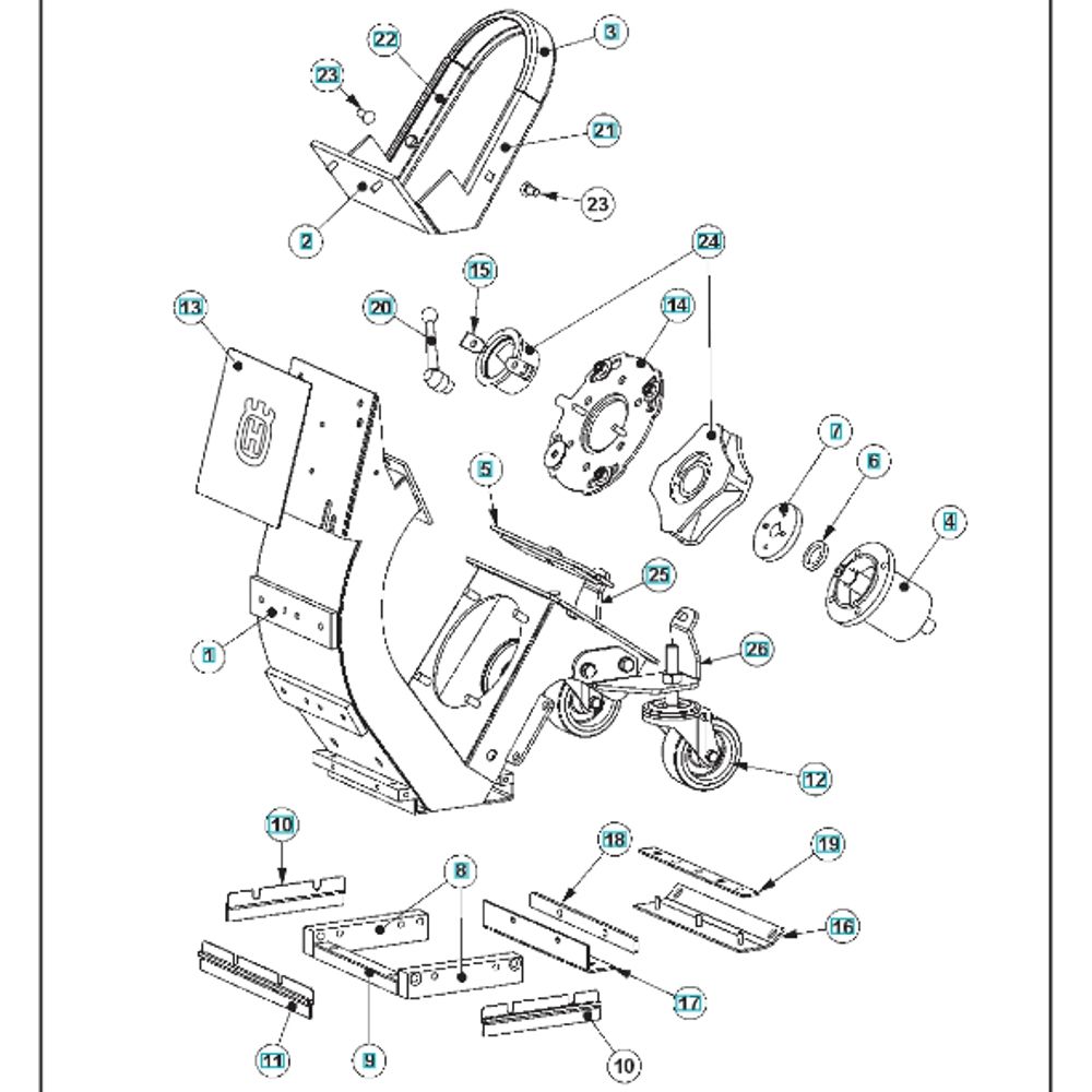 The Housing Assembly for Husqvarna BLASTRAC 1-8DPF40 Concrete Shot Blasters includes essential components to ensure optimal performance and longevity. This assembly is crucial for protecting internal parts and maintaining the machine's efficiency. Components such as seals, gaskets, and fasteners are included to support the shot blaster's operation.