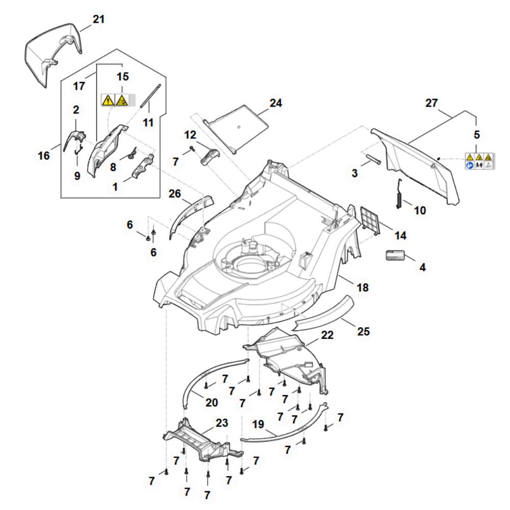 The Housing Assembly for the Stihl RM 448.3 V Lawn Mower is a crucial component designed to protect and support the mower's internal mechanisms. This genuine Stihl part ensures optimal performance by housing essential elements such as the engine, blades, and drive system. Regular maintenance and replacement of the housing can help extend the mower's lifespan and efficiency.