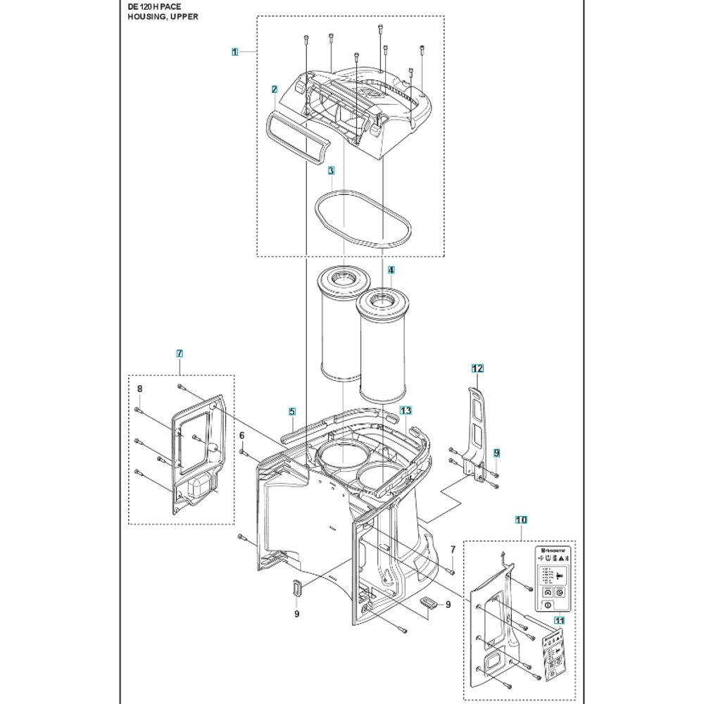 The Housing Assembly for the Husqvarna DE120H-PACE Dust Extractor is designed to ensure optimal performance and longevity of your equipment. This assembly includes essential components that protect and house the internal mechanisms, ensuring efficient dust extraction. Genuine parts are available to maintain the integrity and functionality of your Husqvarna dust extractor.