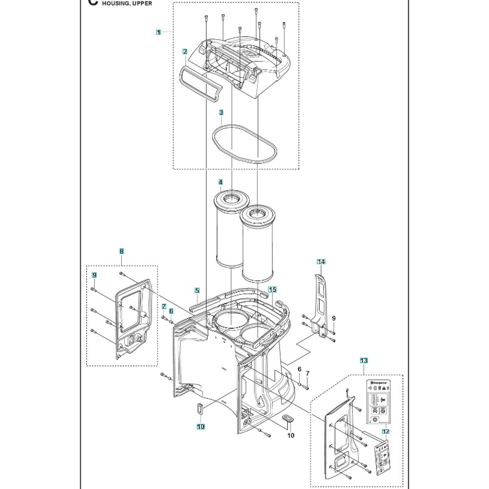 The Housing Assembly for the Husqvarna DE120H Dust Extractor is designed to ensure optimal performance and longevity of your equipment. This assembly includes essential components that protect internal mechanisms from dust and debris, maintaining efficient operation. Genuine Husqvarna parts ensure compatibility and reliability, supporting effective dust extraction in various environments.