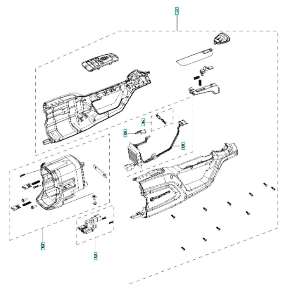 The housing for the Husqvarna 120iTK4-H Battery Hedge Trimmer is designed to protect internal components and ensure optimal performance. It is available in both genuine and non-genuine Husqvarna parts, providing options for maintenance and repair. This housing helps safeguard the trimmer's motor and electronics from external damage and debris.