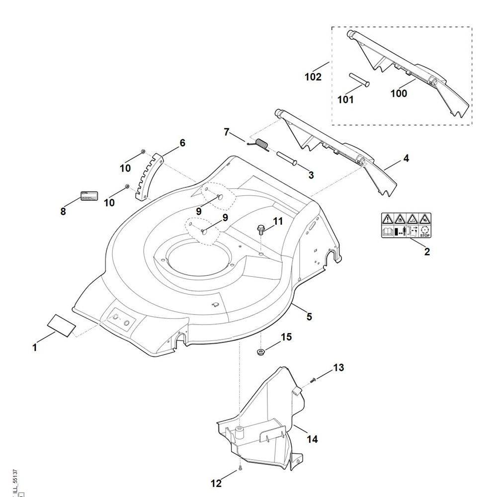 The housing for the Stihl RM 253.0 Mower is a crucial component that encases and protects the mower's internal mechanisms. Designed to withstand outdoor conditions, it ensures the mower operates efficiently by safeguarding the engine and other vital parts. This genuine Stihl part is essential for maintaining the durability and performance of your mower.