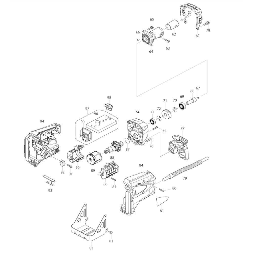 The Housing, Motor Assembly for the Makita BC300LD Brushcutter includes key components to ensure optimal performance and longevity. This assembly is crucial for the efficient operation of the brushcutter, providing protection and support for the motor. It includes parts such as the housing, motor, and related fittings, all designed to maintain the integrity and functionality of the machine.