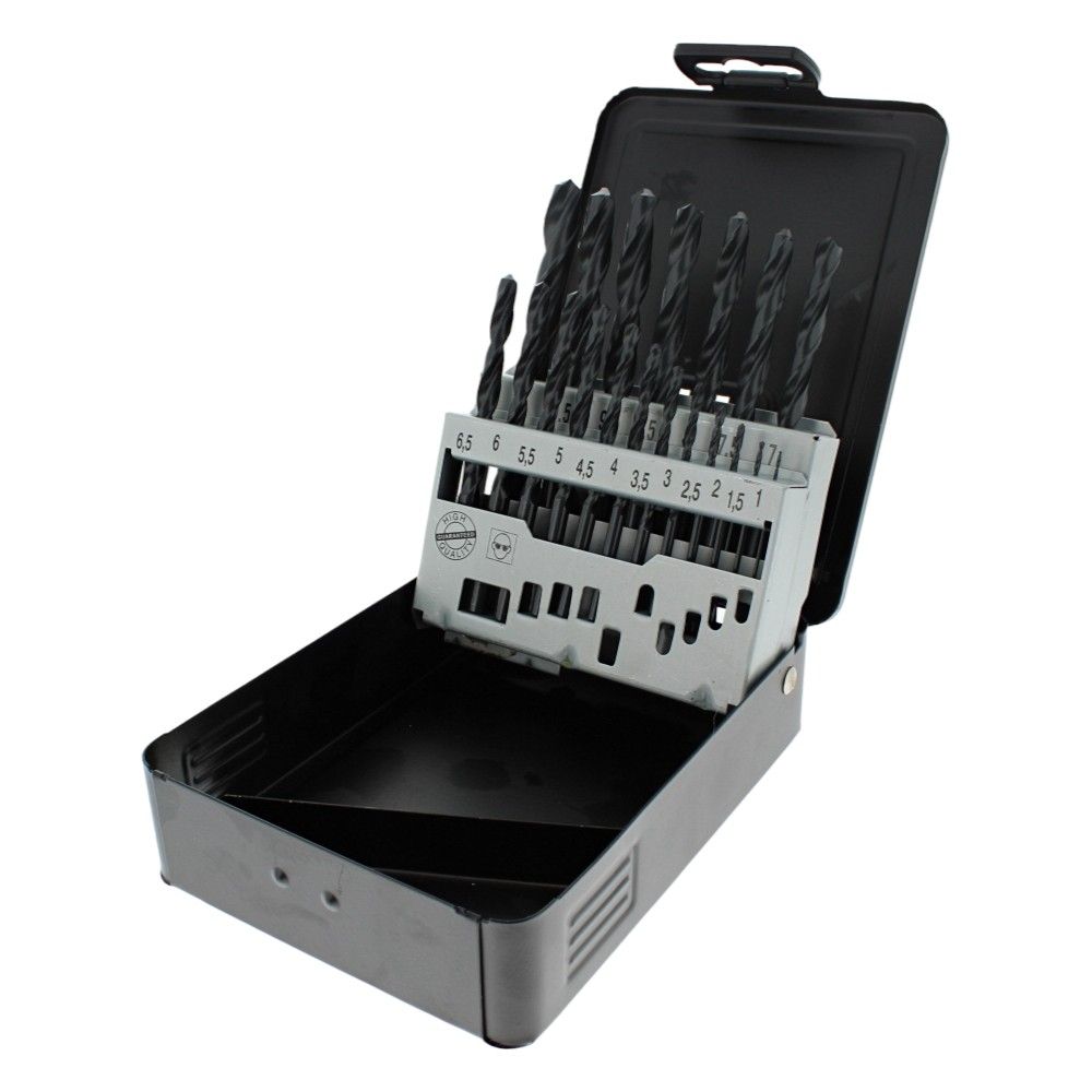 HSS twist drill set, jobber-length twist drills, metal drill bit assortment, straight‐shank metal drills, black‐oxide HSS drill set, DIN 338 jobber drills, Type N fluted metal drills, general‐purpose metal twist bits.