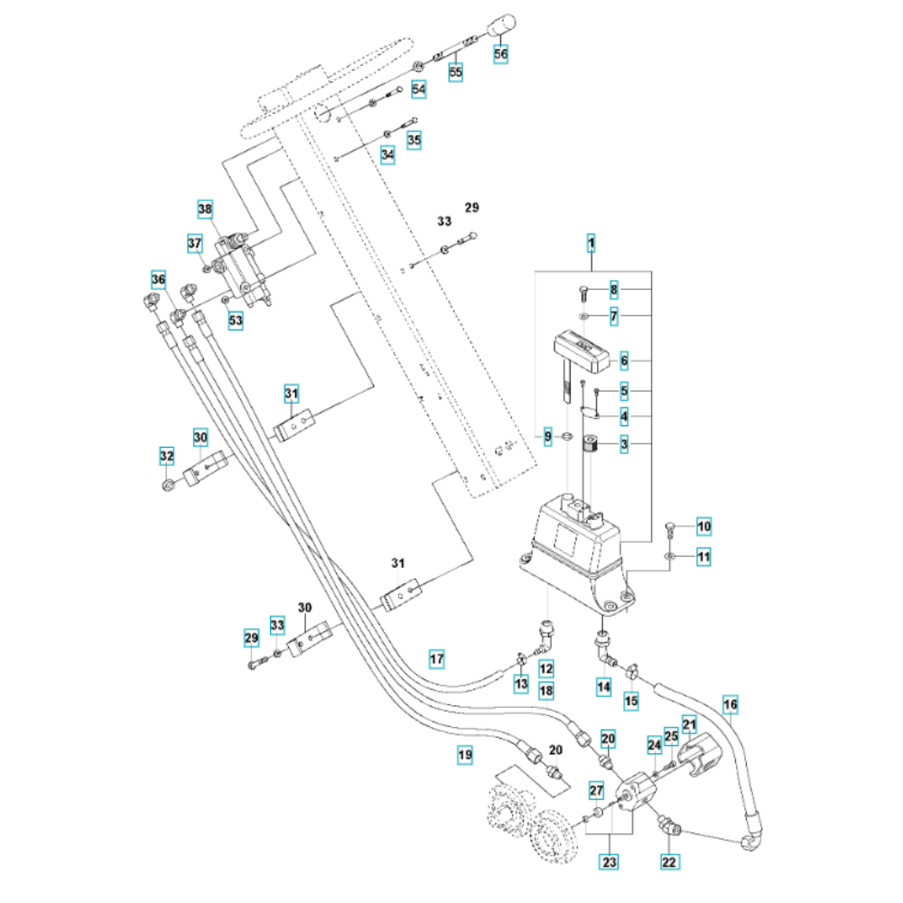 The Hydraulic Assembly for the Husqvarna LG 300 Petrol Reversible Compactor is designed to ensure optimal performance and longevity. This assembly includes key components such as pumps, valves, and hoses, which work together to provide efficient hydraulic power. Regular maintenance of these parts helps maintain the compactor's reliability and effectiveness in compacting tasks.