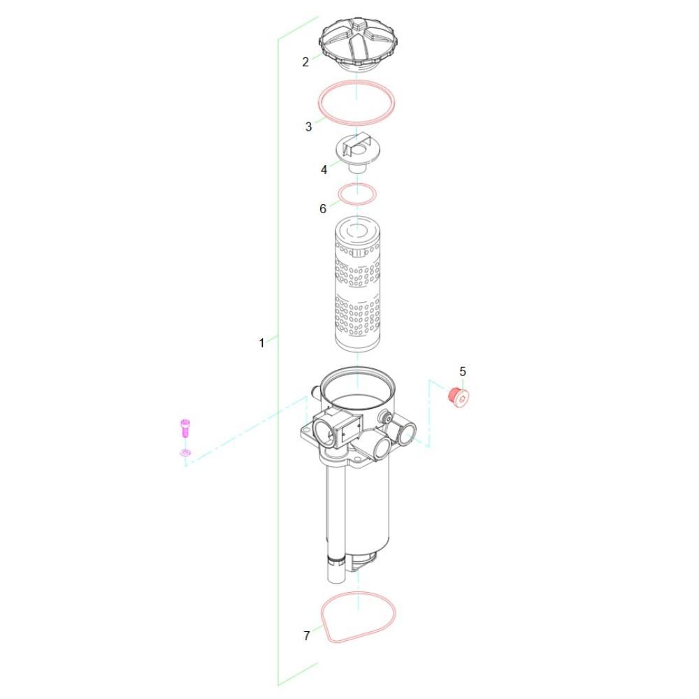 The Hydraulic Oil Filter Assembly for the Wacker TH522 Telehandler is designed to ensure optimal performance and longevity of the machine. This assembly includes essential components that filter hydraulic oil, preventing contaminants from causing wear and damage. Genuine Wacker Neuson parts ensure compatibility and reliability, maintaining the telehandler's efficiency.