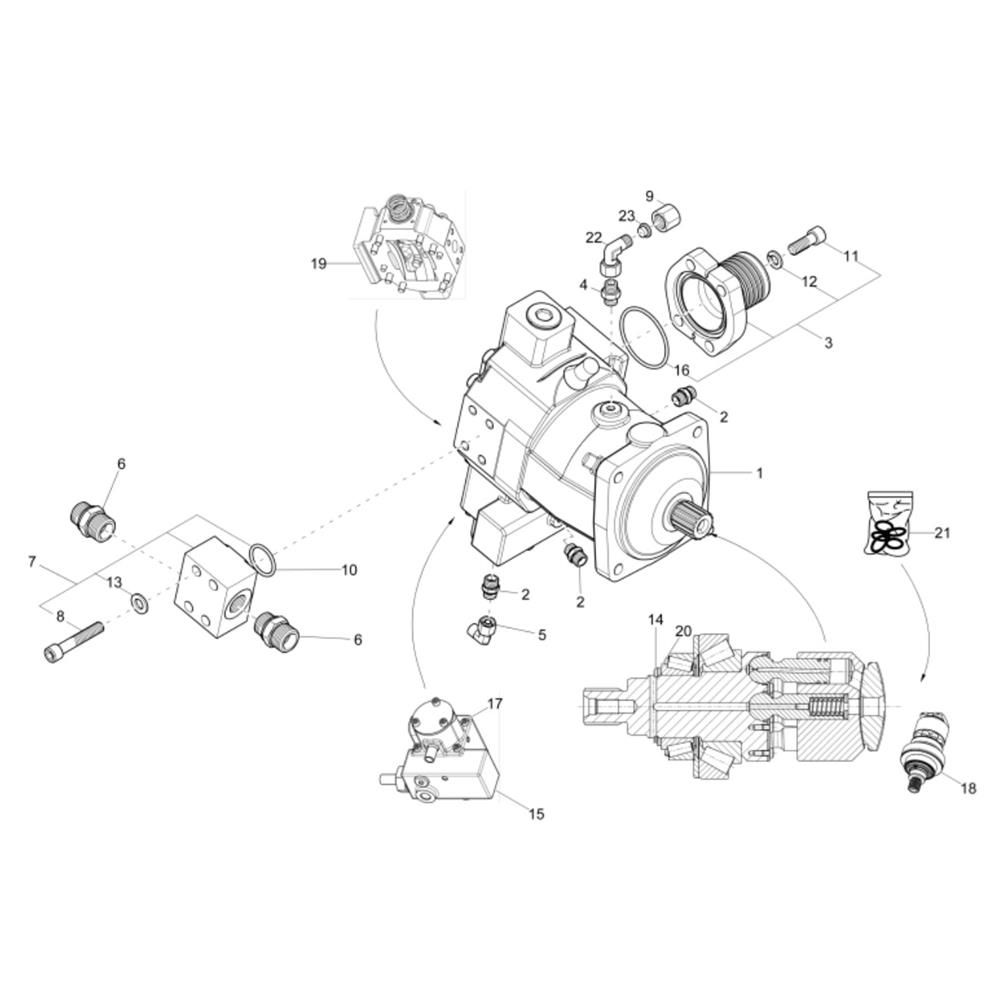 The Hydraulic Pump Assembly for the Wacker EZ80 Mini Excavator is designed to ensure efficient hydraulic performance. This assembly includes key components such as pistons, seals, and valves, crucial for maintaining optimal operation. Genuine Wacker Neuson parts ensure compatibility and reliability, supporting the excavator's hydraulic system for demanding tasks.