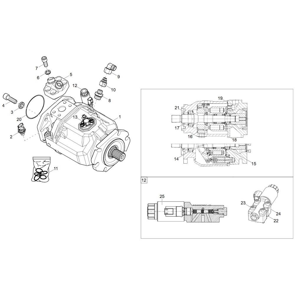 The Hydraulic Pump Assembly for the Wacker EW100-2 Excavator is designed to ensure efficient hydraulic power delivery for optimal machine performance. This assembly includes key components such as pistons, seals, and valves, which work together to maintain fluid pressure and flow. Essential for routine maintenance and repair, it helps extend the service life of your excavator.