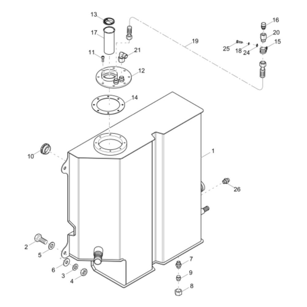The Hydraulic Tank Assembly for the Wacker DW100 Dumper is designed to ensure efficient hydraulic fluid storage and distribution. This assembly plays a crucial role in maintaining the hydraulic system's performance, reducing wear and tear on components. It includes essential parts such as tanks, hoses, and seals, which are vital for the dumper's operation. Genuine Wacker Neuson parts ensure compatibility and reliability.