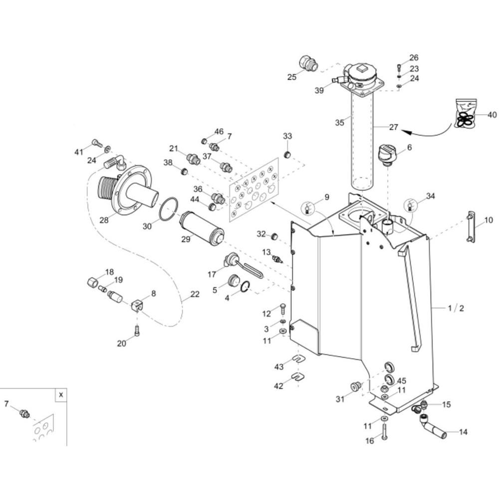 The Hydraulic Tank Assembly for the Wacker ET65 Mini Excavator is designed to ensure efficient hydraulic fluid storage and distribution. This assembly plays a crucial role in maintaining the excavator's hydraulic system, contributing to smooth operation and reliability. Components typically include the tank, fittings, seals, and hoses, all essential for optimal performance.