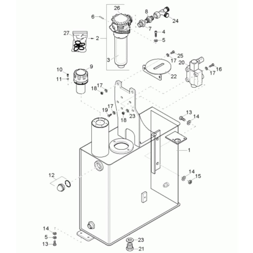 The Hydraulic Tank (Front Tip) Assembly for the Neuson 6001 Dumper is essential for maintaining hydraulic fluid storage and delivery. This assembly ensures efficient operation of the dumper's hydraulic system, supporting tasks like lifting and tipping. Components may include tanks, hoses, fittings, and seals, all designed to fit the Neuson 6001 model.