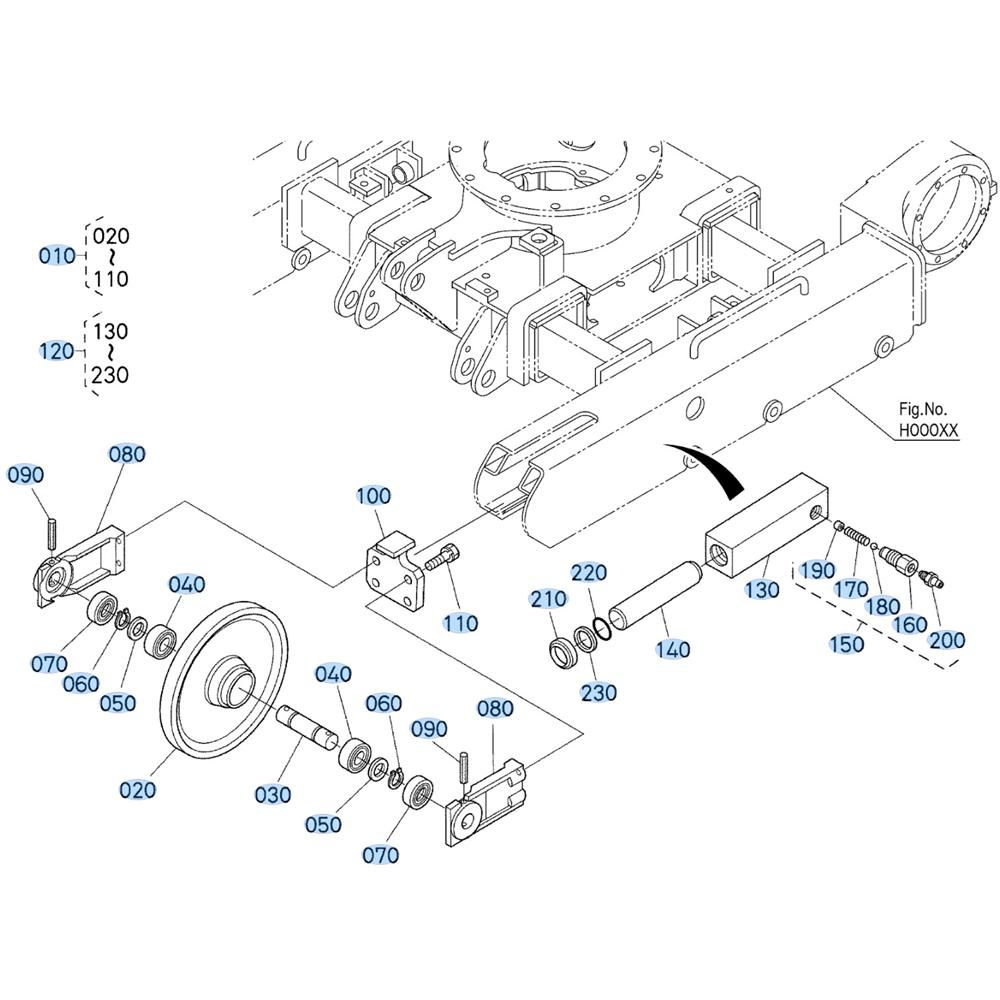 The Idler Assembly for the Kubota U10-5 Mini Excavator is a crucial component designed to maintain track tension and alignment, ensuring smooth operation and reducing wear. This assembly includes genuine Kubota parts, such as rollers, brackets, and tensioners, to provide reliable performance and durability. Ideal for routine maintenance and repairs, it helps extend the lifespan of your excavator.
