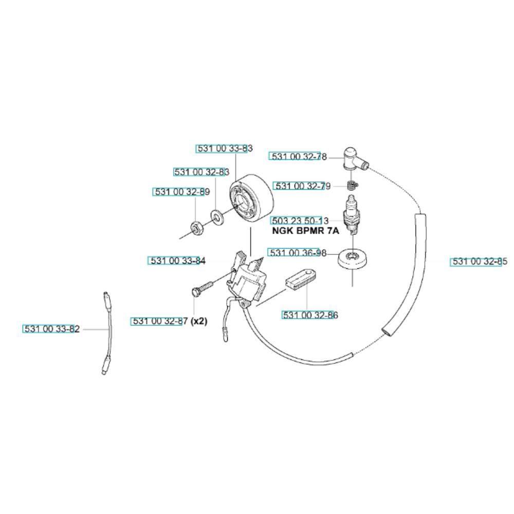The Ignition System Assembly for the Husqvarna 155 BT Blower includes key components to ensure efficient engine start and operation. This assembly is crucial for maintaining the blower's performance and reliability. It typically comprises parts like ignition coils, spark plugs, and wiring harnesses, all designed to work seamlessly with the Husqvarna 155 BT model.